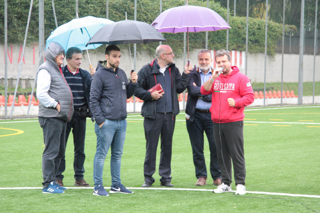 Per l’occasione erano presenti il neo assessore allo Sport del Comune di Lecco Roberto Nigriello, il presidente del CSI Ennio Airoldi, il delegato provinciale della FIGC Giovanni Colombo, il consigliere comunale Andrea Frigerio e Paolo Dell’Oro, segretario generale della Fondazione Comunitaria del Lecchese che sta collaborando con la Polisportiva Rovinata per la raccolta dei fondi necessari alla copertura finanziaria dei lavori.