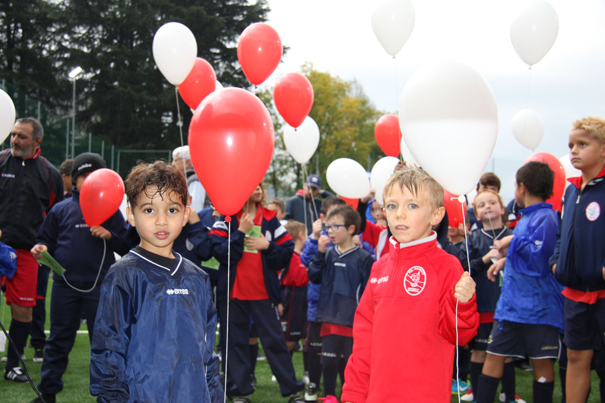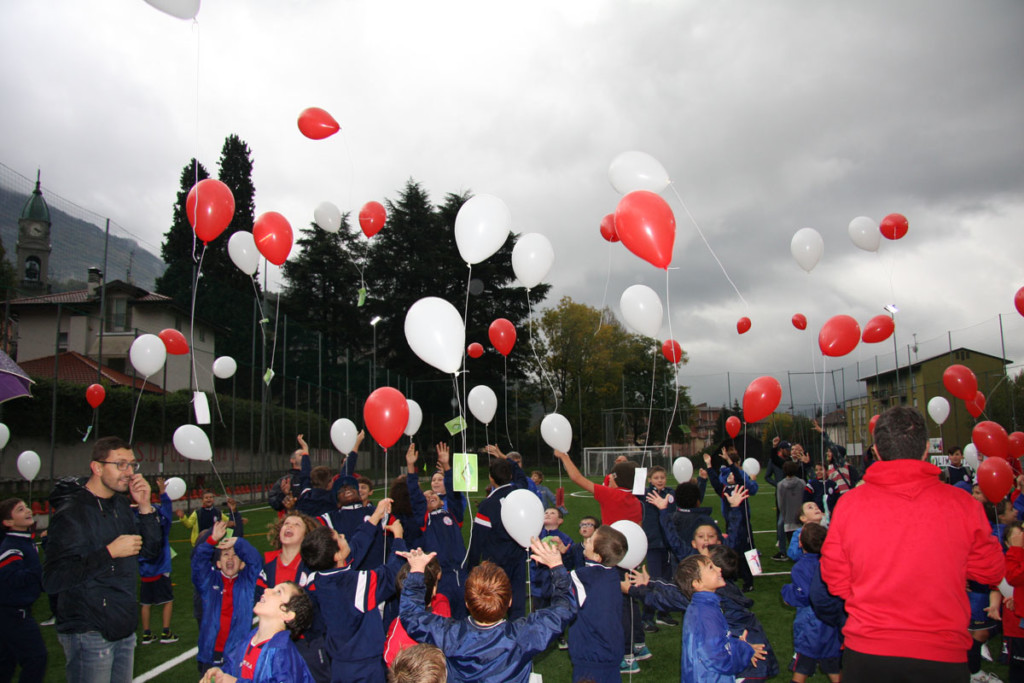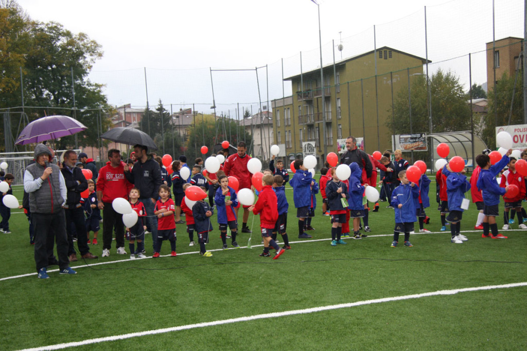 La pioggia e le nuvole non hanno fermato l’entusiasmo dei bambini della scuola calcio della Rovinata che hanno lanciato verso il cielo palloncini bianco rossi, cui erano appesi disegni e slogan composti dagli stessi giovani atleti: il verde del nuovo manto sintetico, la gioia dei bambini della Rovinata ed i palloncini che hanno spiccato il volo verso l’alto sono riusciti a colorare persino il cielo grigio.