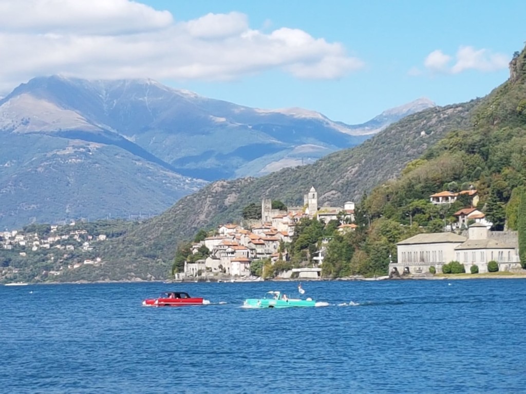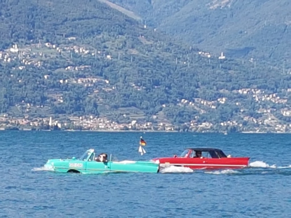 Nessun errore di strada da parte del ‘navigatore’ perché queste due vetture navigano per davvero! Si tratta infatti di auto-anfibie che possono correre sia sull’asfalto che sull’acqua. Quelle in questione sono due vetture storiche, una vera perla per gli appassionati collezionisti, ne sono state prodotte poche migliaia di modelli. (Foto di Silvio Sandonini)