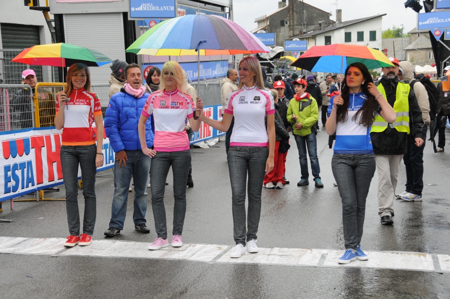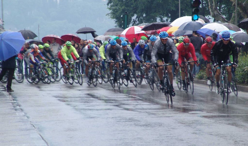 Ore 12.30 – La pioggia è arrivata puntuale ai Piani Resinelli (quota 1278), mentre l’entourage del Giro d’Italia sta ultimando i lavori di allestimento all’arrivo a 6° C di temperatura. Non sono mancati i ciclisti avventurieri che sfidando il tempo hanno raggiunto i piedi della Grignetta anche se l’acqua sta inevitabilmente rovinando la festa. Curiosità degna di cronaca, la fiscalità degli addetti ai lavori nel vietare l’accesso ai ciclisti dopo le 10, come da ordinanza della Questura, è stata bypassata con un escamotage all’italiana: “Beh da qui vorra dire che procediamo a piedi spingendo la bici”. Detto, fatto e molti ciclisti sfilando sotto il naso delle Forze dell’Ordine hanno proseguito così, fino a che l’occhio vigile degli addetti ai lavori ha potuto controllare, poi, di nuovo in sella, e via verso i Piani Resinelli.