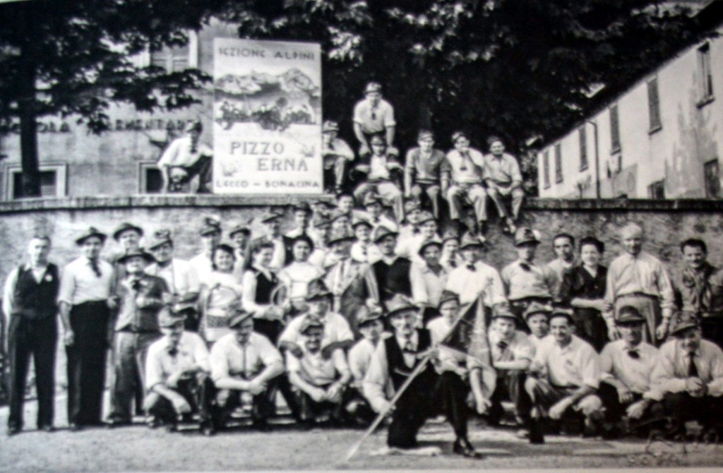 L’idea di costituire il gruppo di Bonacina è nata da alcuni alpini in congedo e amici che, per poter raggiungere il numero minimo di 40 associati, hanno attinto anche dai vicini dei rioni di Acquate e San Giovanni; nel settembre del 1954, alla trattoria Colombo, viene ufficialmente fondato il gruppo. Dopo due anni di lavoro, si avvera il sogno di installare una croce sul Pizzo d’Erna, inaugurata il 22 luglio del 1956.