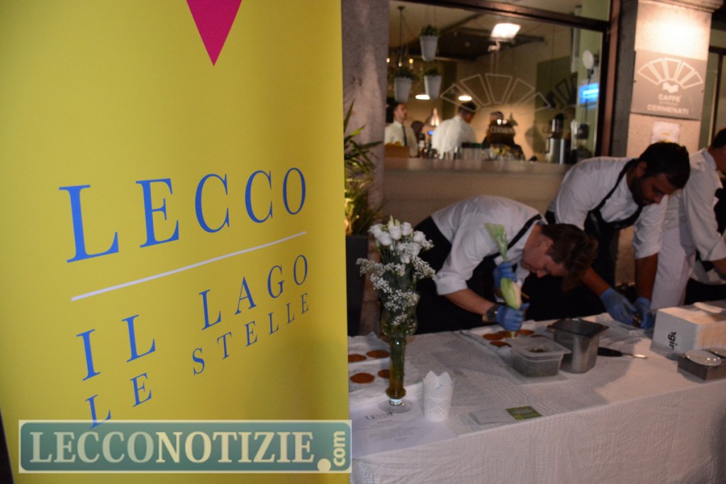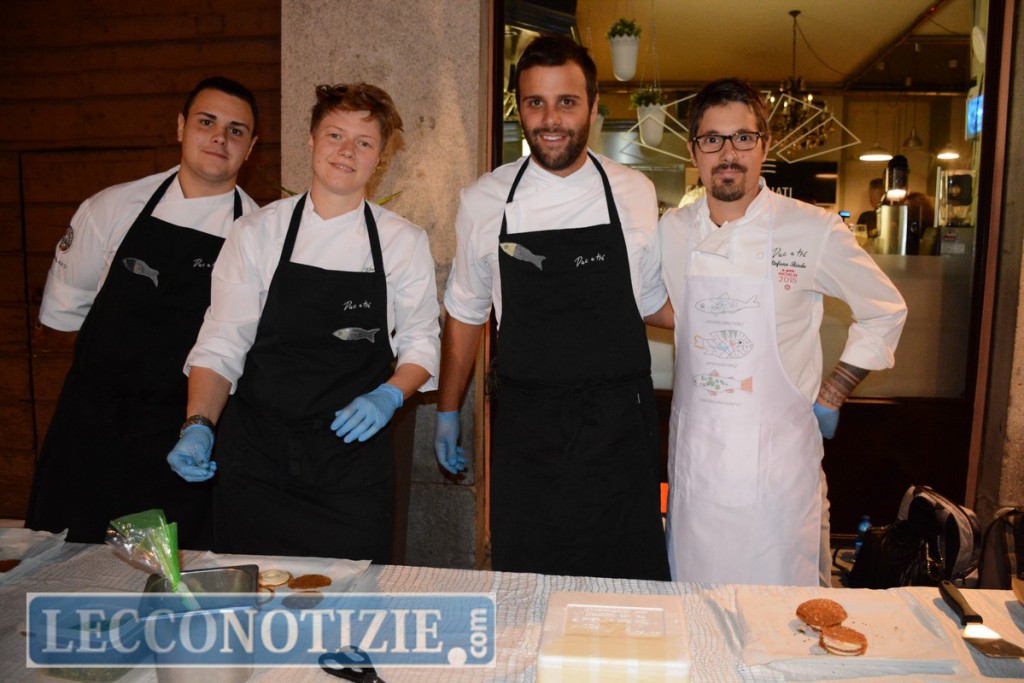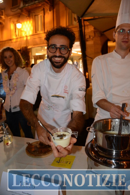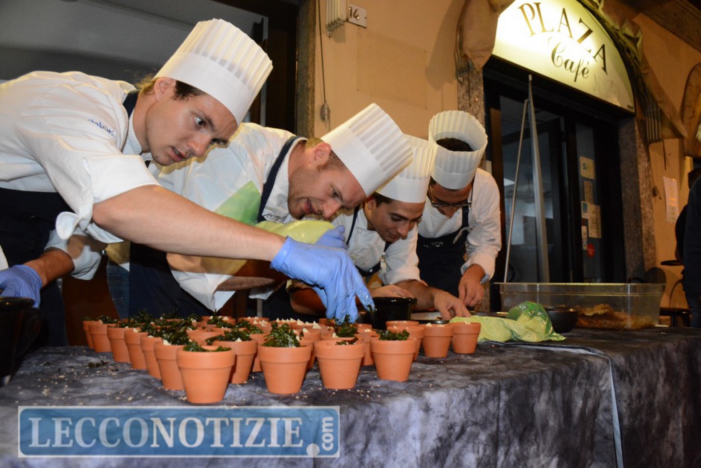 Tutto preparato al momento nelle piazze principali del centro storico da Mauro Elli (Il Cantuccio), Fabrizio Ferrari (Porticciolo 84), Claudio Prandi (chef storico dell’Hotel Griso di Lecco), Stefano Binda (Dac à Tra) e i loro collaboratori. Giancarlo Morelli e Theo Penati impegnati in progetti internazionali non hanno fatto mancare il loro apporto al delizioso banchetto, rappresentati all’evento dai responsabili delle loro cucine: Fabio Moriconi per Morelli, Marco Vassena per Penati e per Gianni Tarabini (La Présef) era presente Franco Aliberti.
