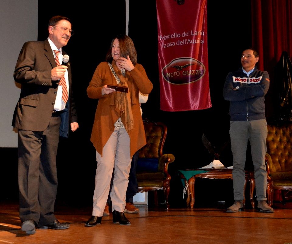 Il collegamento dall’Inghilterra con il musicista Grant Beardsley, al quale si deve la sigla del videoracconto, l’indirizzo di saluto dell’assessore Grazia Scurria (“con la Guzzi stiamo seguendo un percorso che dovrà portare alla realizzazione del nuovo museo dell’Aquila mandellese e guardiamo con favore anche alla proposta di intitolare una via del paese ai piloti e ai collaudatori della Moto Guzzi”) e la lettura del messaggio fatto pervenire dall’assessore Luciano Benigni hanno preceduto gli interventi di Nello Mariotti e Mario Arosio, rispettivamente responsabile produzione dell’azienda motociclistica lariana e presidente del Moto Guzzi World Club.