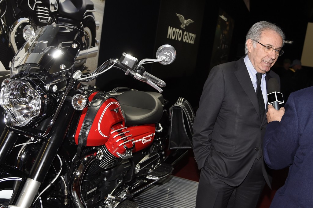 Presente al primo giorno di presentazione e di prove dedicate alla stampa internazionale, Roberto Colaninno presidente e amministratore delegato del Gruppo Piaggio che controlla Moto Guzzi e Aprilia da fine 2004. “Per il Gruppo Piaggio il 2015 è iniziato positivamente, nonostante numerosi mercati presentino ancora delle difficoltà” ha affermato Roberto Colaninno. “Oggi è una giornata molto importante per Moto Guzzi e per tutto il Gruppo, una giornata che arriva pochi giorni dopo la chiusura di un primo trimestre che è andato bene, malgrado il momento che stiamo attraversando, e che ci fa guardare con fiducia allo sviluppo dei prossimi mesi”.