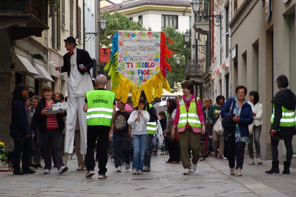 Alle 17.30 circa è partito il lungo corteo che dal piazzale di fronte al Municipio si è diretto verso piazza XX Settembre, dove i giovanissimi hanno messo in scena uno spettacolo teatrale di fronte al pubblico di genitori. Un’iniziativa a sfondo ecologico dal titolo “Ti regalo un fiore” patrocinata dal Comune di Lecco e da Confcommercio Lecco.