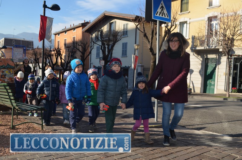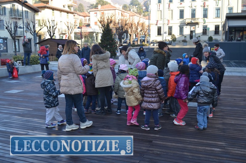 CALOLZIOCORTE – I bambini della scuola dell’infanzia di via Lavello, giovedì mattina, si sono ritrovati in piazza Vittorio Veneto per una iniziativa speciale legata al Natale.