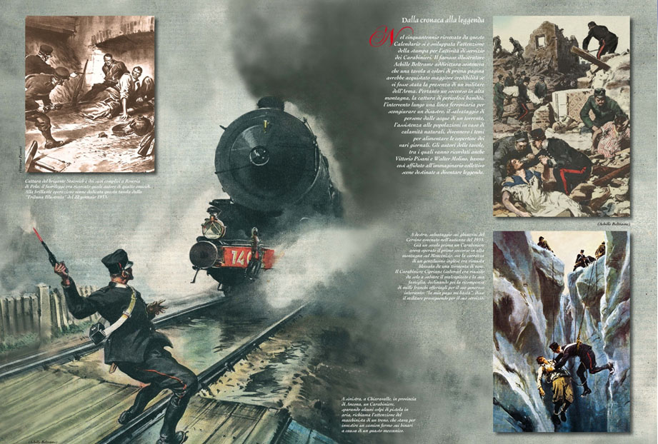 In vista del bicentenario, che i carabinieri si preparano a festeggiare nel 2014, le ultime edizioni del calendario sono state utilizzate per ripercorrere la storia dei duecento anni dell’Arma, dividendola in quattro segmenti da cinquant’anni l’uno; l’edizione odierna, 12 tavole ideate ed illustrate dal maestro Paolo Di Paolo, tratta l’intervallo tra il 1914 e il 1964: “il periodo di maggiore presenza dell’Arma nella storia del Paese” come ha spiegato il comandate provinciale, Ten. Col. Riscaldati, che in mattinata ha illustrato il nuovo calendario, affiancato dal Ten. Col. Alessandro Giuliani.