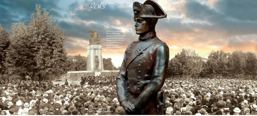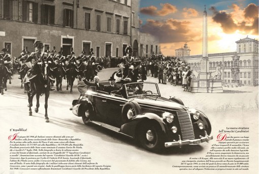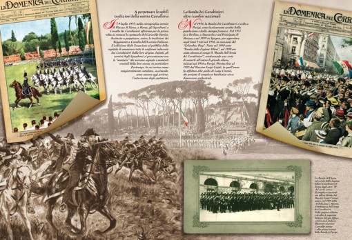 La copertina di quest’anno è stata dedicata al Monumento al Carabiniere, eretto nel giardino del Palazzo reale di Torino dopo la prima guerra mondiale, per onorare il sacrificio dei caduti; sono molti i riferimenti alle due guerre mondiali: dall’annuncio dell’entrata in guerra dell’Italia contro l’Austria, il 24 maggio 1915, con la partenza per la prima volta della Bandiera dell’Arma dei Carabinieri al fronte, ai sacrifici eroici dei militari dell’Arma, arrivando alla proclamazione della Repubblica e alla formazione di quelli che, qualche anno dopo, sarebbero divenuti i Corazzieri a guardia del Presidente della Repubblica.