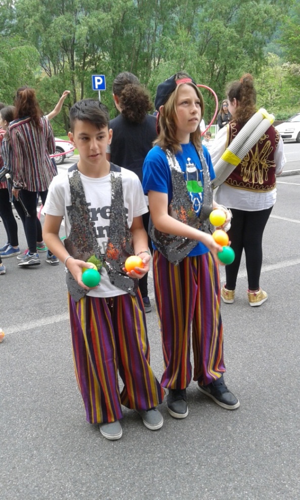 “Un linguaggio altro da quello delle discipline canoniche – continuano le insegnanti -che sollecita  abilità importanti e trasversali : la concentrazione, il controllo dell’emotività, la fiducia e la collaborazione. I circensi di Somasca hanno curato ogni aspetto della loro Performance dal titolo “La musica ed il circo”, che ha concorso nella sezione 13 riservata ai Progetti Didattici Pluridisciplinari. Si sono concentrati sulla presentazione di abiti variopinti, sul trucco, sulle scenografie; si sono esibiti con espressività gestuale, mimica e molta agilità utilizzando trampoli, palline, cerchi e attrezzi creati per l’occasione”.