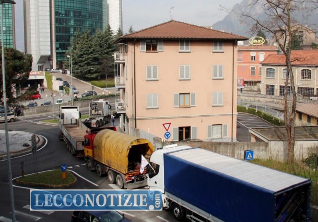 Il corteo, dal Bione, intorno alle 10 si è spostato in via Valsugana salendo da Belledo fino all’Ospedale, per poi scendere da corso Promessi Sposi fino alle Meridiane. Imboccando a destra via XI febbraio ha raggiunto il centro da Corso Matteotti, da lì in discesa fino alla stazione. I tir sono passati davanti alla sede della Provincia, del Comune, percorrendo poi Viale della Costituzione, via Leonardo da Vinci fino al ponte Kennedy. Alla rotonda di là del ponte, inversione di marcia, rientro a piazza Manzoni, quindi tutto Corso Martiri per fare ritorno al Bione.