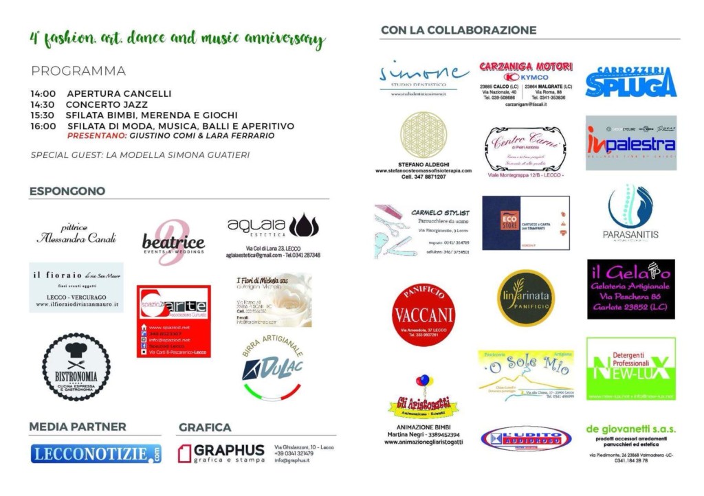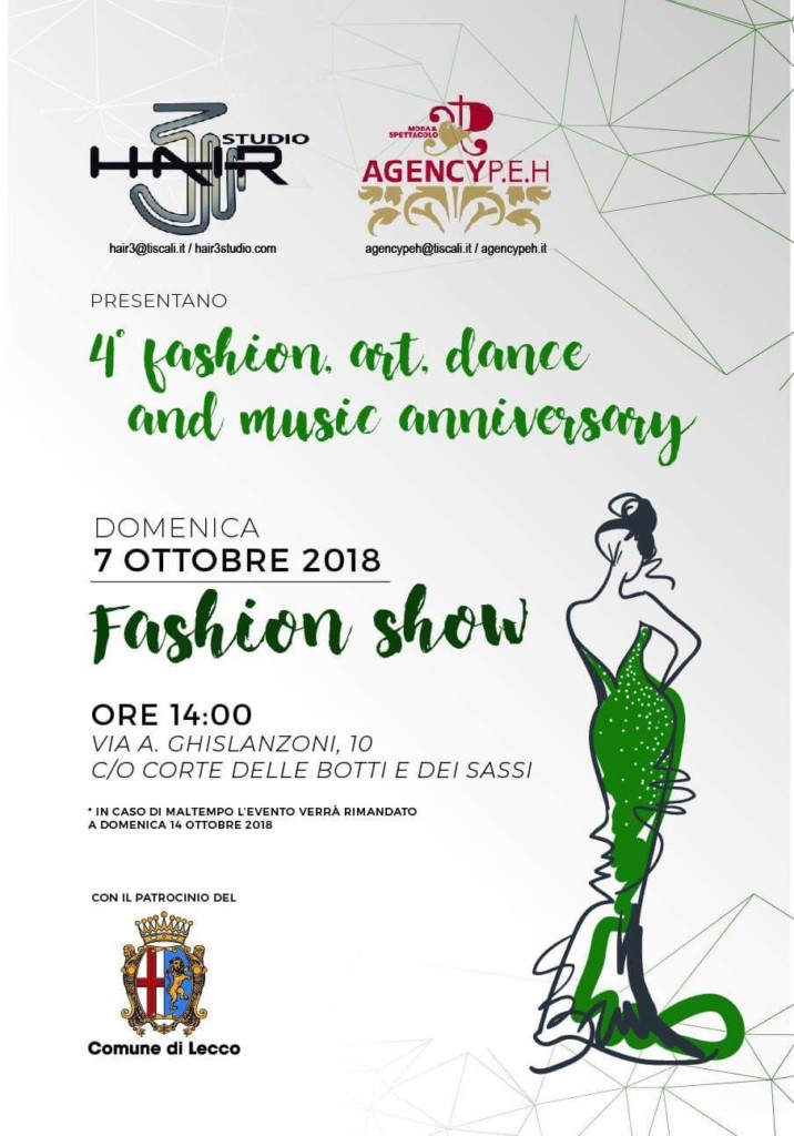 LECCO – Torna anche quest’anno l’evento tra moda, musica e arte nel bellissimo contesto della Corte delle Botti di via Ghislanzoni: è “4rd Fashion, art, dance & music anniversary” che si terrà in occasione della festa di Lecco, domenica 7 ottobre 2018 a partire dalle ore 14,00.