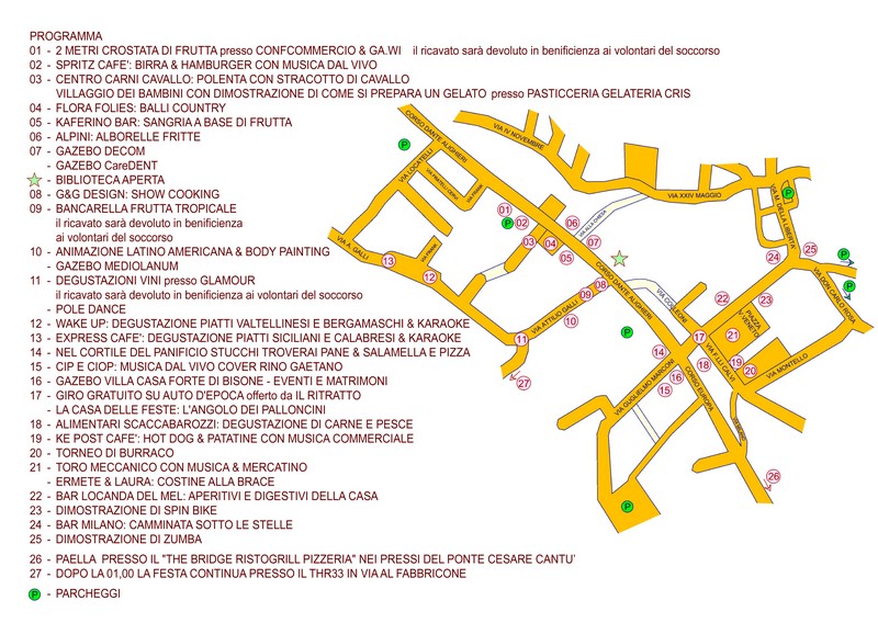 Durante la manifestazione ci saranno degli eventi in cui sarà possibile trovare musica dal vivo di tutti i gusti, ci sarà un burraco e tre maxischermi (in piazza Vittorio Veneto, in stazione e sotto via Fratelli Calvi) dove sarà proiettata la finale di Champions League Juventus- Barcellona. L’evento è organizzato da Confcommercio, unione commercianti di Calolziocorte, in collaborazione con i volontari del soccorso, che dalle 14.00 alle 2.00 di notte saranno a nostra completa disposizione.