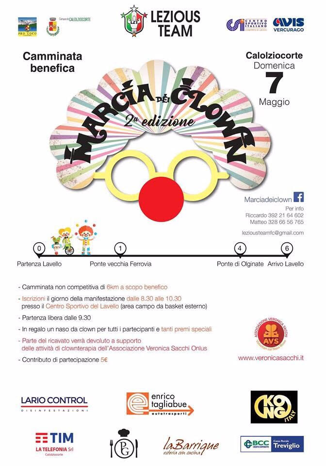 Il contributo di partecipazione è di 5 euro, mentre parte del ricavato verrà devoluto a supporto delle attività di clown-terapia dell’associazione “Veronica Sacchi Onlus”, fiancheggiata nell’organizzazione della manifestazione dalla Pro loco di Calolzio, l’amministrazione comunale, il Lezious Team, la sezione calolziese del Centro Sportivo Italiano e l’Avis Vercurago.