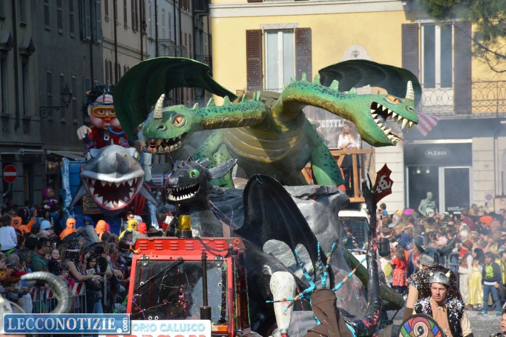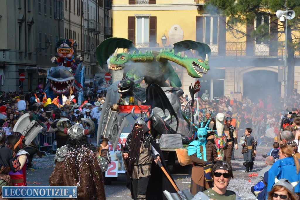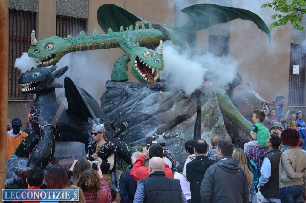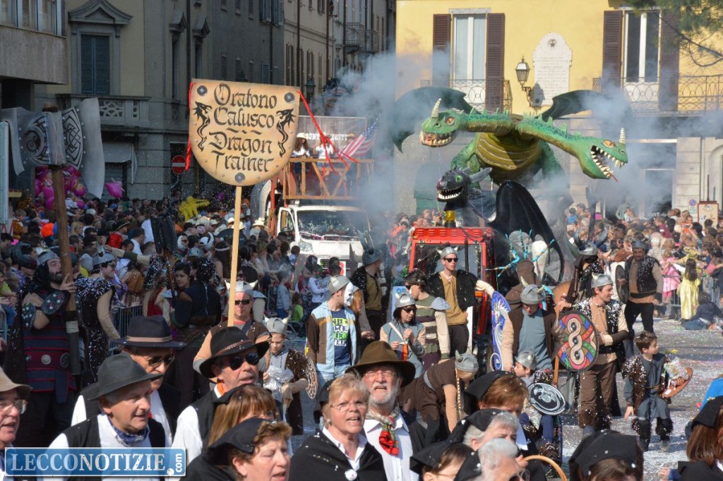 Secondo si è invece classificato il “Vecchio Pazzo West” di Valmadrera e i suoi cowboy, che sono riusciti a riprodurre un Saloon con tanto di comparse che sembravano essere uscite da un film di Sergio Leone. Terzo nella classifica dei carri “Dragon Trainer” realizzato dalla compagnia di Calusco d’Adda che si è rifatta all’omonimo film di animazione costruendo due giganti draghi sputa fumo, accompagnati da barbari vichinghi.