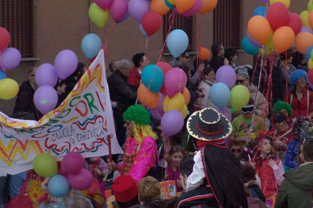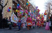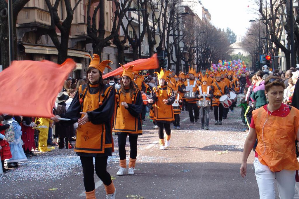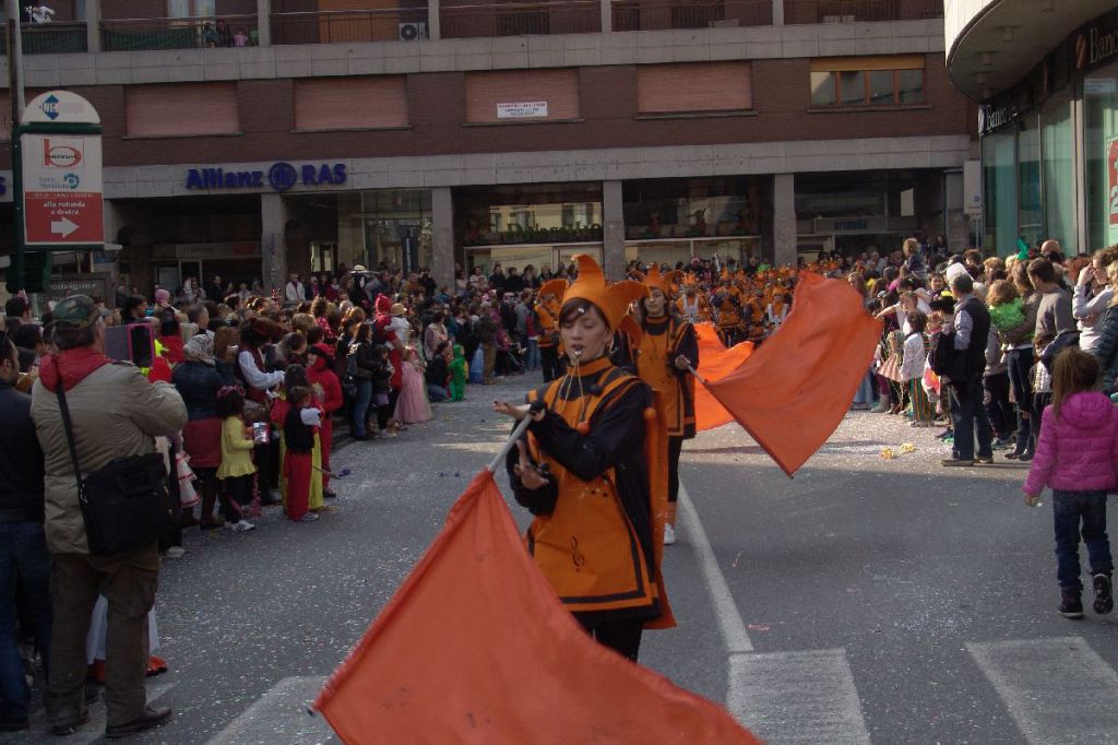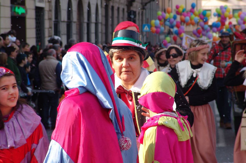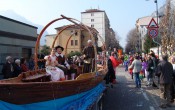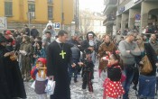 Il corteo di maschere e carri è risalito per via Cavour per rincamminarsi verso piazza dei Cappuccini, inizio e fine della parata.