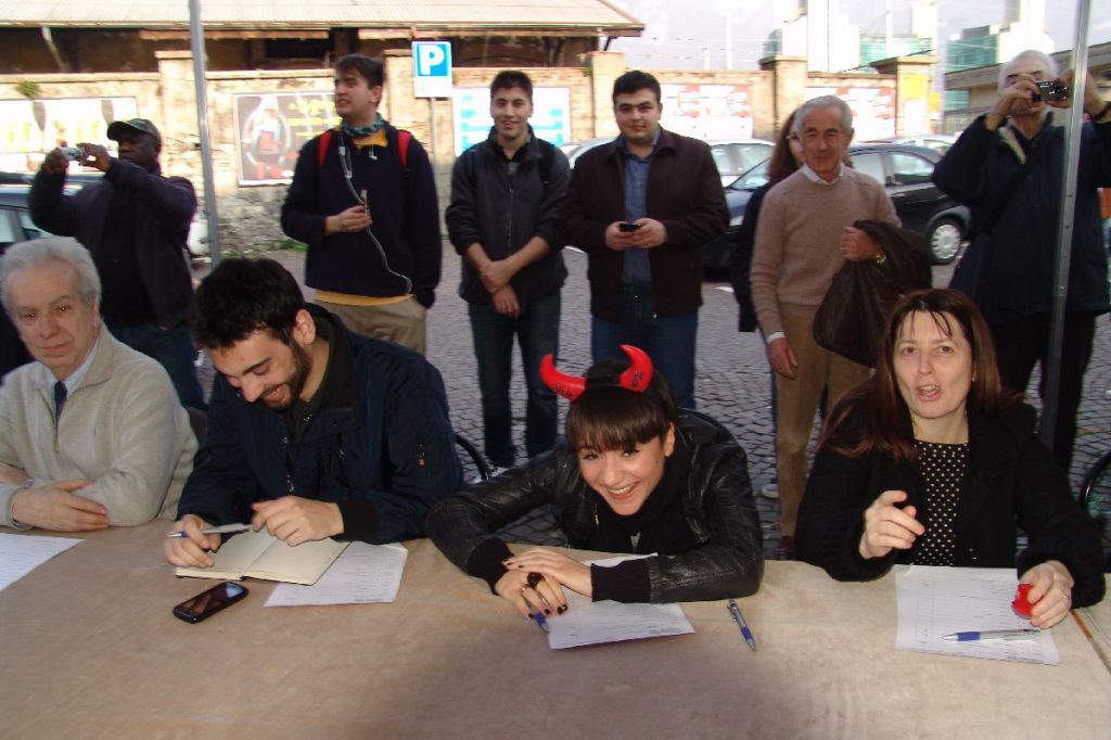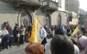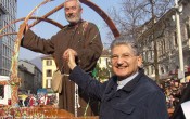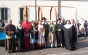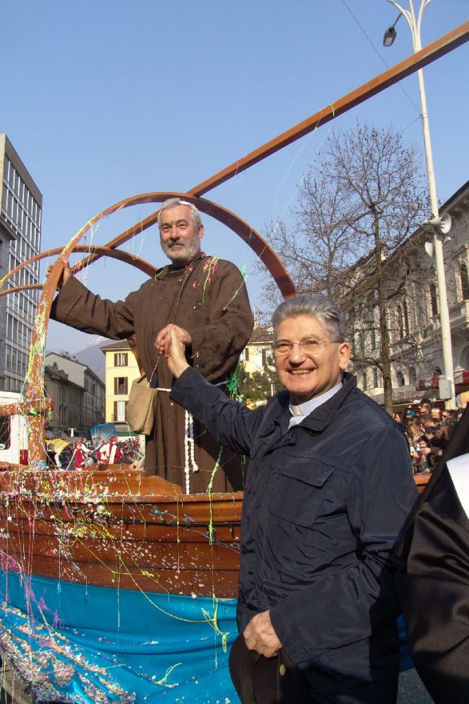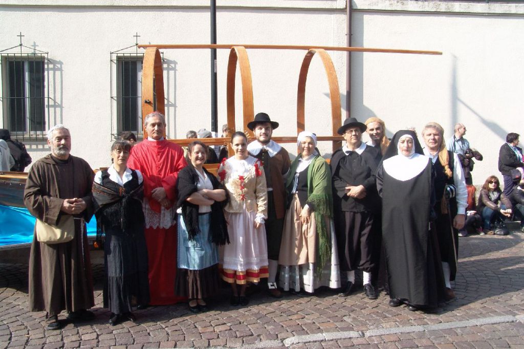 Lì anche monsignor Franco Cecchin che ha accolto l’arrivo della Lucia con a bordo i Promessi Sposi, dando un’allegra stretta di mano al “collega” Fra Cristoforo.