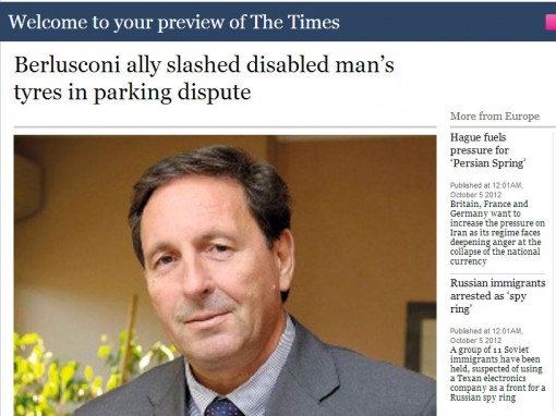 Meno amareggiato e più mordente il sondaggio lanciato su Facebook da Luca Bottura, conduttore del programma radiofonico Later, in onda su Radio Capital: secondo la maggior parte degli ascoltatori il “Consigliere Pdl buca le gomme di disabile che gli aveva fatto spostare la Jaguar dal suo posto auto… ma si giustifica: sono buchi ereditati dal precedente governo di centro sinistra”.
