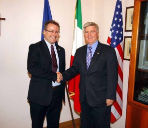 LECCO – Il Console Generale degli Stati Uniti d’America a Milano, Kyle R. Scott, ha incontrato oggi pomeriggio il Sindaco di Lecco Virginio Brivio nello studio del Palazzo comunale e subito dopo ha incontrato il presidente della Provincia Daniele Nava. All’incontro con il sindaco erano presenti anche il suo vice Vittorio Campione, l’assessore Francesca Bonacina e il presidente del Consiglio comunale Alfredo Marelli.
