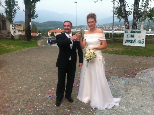 LECCO – Per le montagne lecchesi ha compiuto un’infinità di passi, ma quello di questa mattina non ha eguali. Lo ha mosso nella chiesa di Bevera stracolma di invitati per convolare a nozze con la sua bella. Stiamo parlando del presidente del Ger (Gruppo Escursionisti Rancesi) Luigi Aondio per tutti Gigio che questa mattina ha detto sì, dichiarando amore eterno a Simona Crippa davanti ai rispettivi testimoni: Marco Ghislanzoni (Braccio), Orietta Aondio, Elisa Mauri e, Ambrogio Gironi, Serena Rosi e Sara Missaglia.