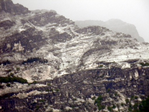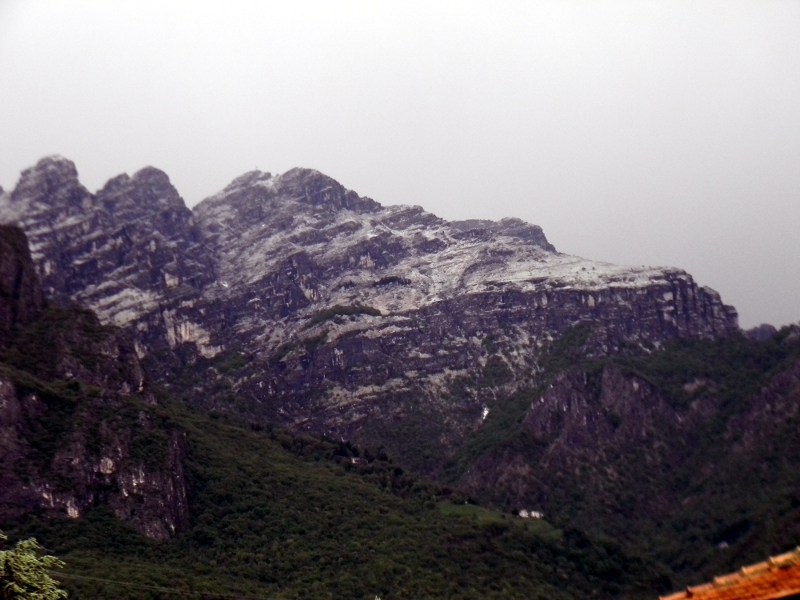 LECCO – In tanti con il naso all’in sù per vedere la magia del Resegone dipinto di bianco nonostante il calendario ci ricorda che siamo al 17 di maggio, ovvero in piena primavera. Il manto bianco che proprio in questi minuti ha avvolto le pendici del monte lecchese ovviamente non è neve, anche se a distanza l’effetto sembra essere proprio quello di una leggera nevicata. In realtà la coltre bianca altro non è che quel che rimane di una intensa grandinata.