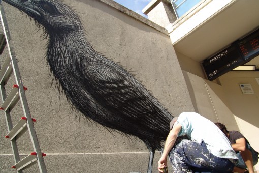 Tra bombolette spray, writers, dj e rapper, il sottopasso della stazione si è animato di un’atmosfera underground che ha attratto a sé tantissimi giovani e curiosi passanti. Vere star della giornata i writers di fama internazionale Lucamaleonte, da Roma, e il belga ROA.