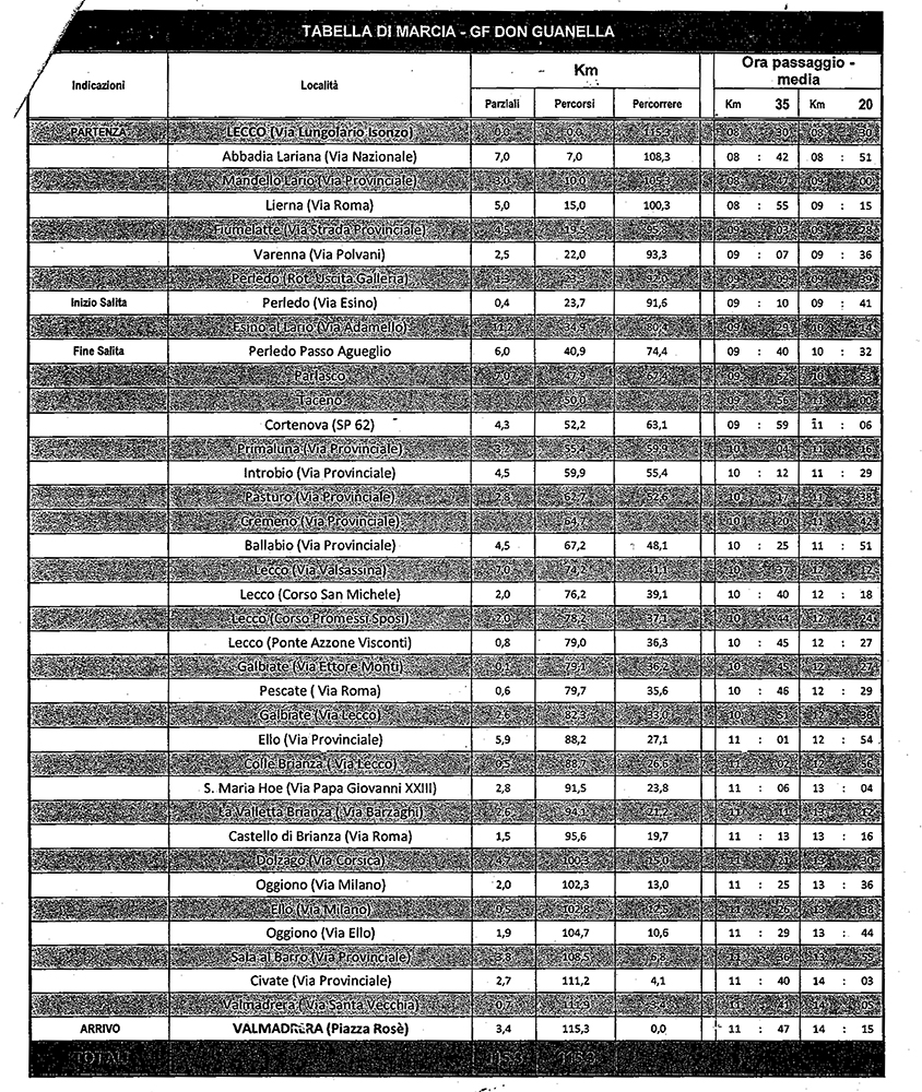 Al link seguente trovate le tabelle riguardanti orari e strade interessate dal passaggio della gara (TABELLA 1 – TABELLA 2)
