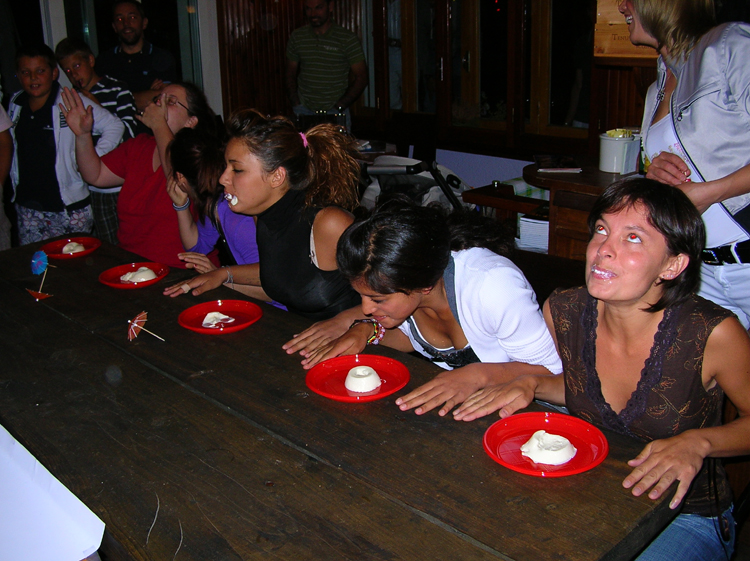 PIANI RESINELLI (Mandello del Lario) – Aprire le “fauci” a più non posso, chinarsi sulla panna cotta che si ha nel piatto e con un risucchio repentino ingoiare l’intero dolce e deglutirlo lasciando meno residui possibili nel piatto.