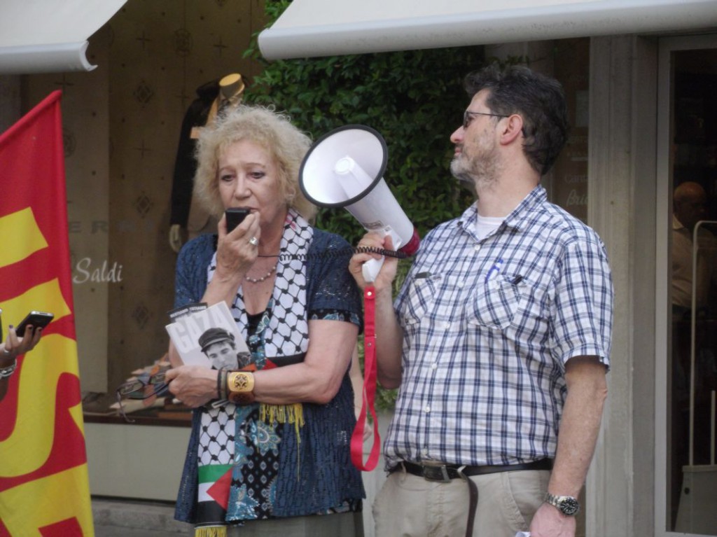 “Finché non ci sarà giustizia, non ci sarà pace per la Palestina” queste sono le parole che pronuncia Egidia Beretta, madre di Vittorio Arrigoni (reporter e attivista ucciso a Gaza il 15 aprile del 2011), nel suo intervento al presidio.