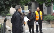 Erano tutti i dipendenti provinciali che sono stati coinvolti in una prova di evacuazione tenuta nascosta fino all’ultimo a tutti tranne agli incaricati alla sicurezza, riconoscibili dalle caratteristiche pettorine arancioni, che hanno scortato i lavoratori fino al parco nel tempo di 1’55”.