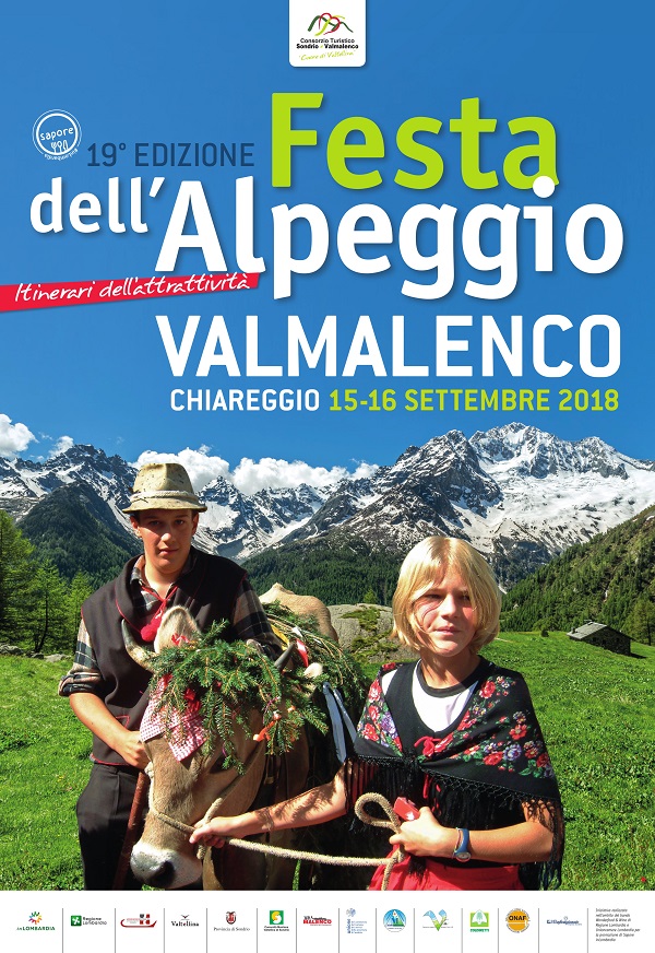 -dalle ore 12:30 Chiareggio Piazza Beato Nicolò Rusca: premiazione della vacca meglio decorata a festa e del miglior produttore di “scimut”, tipico formaggio di valle dell’estate 2018, a cura dell’ONAF;