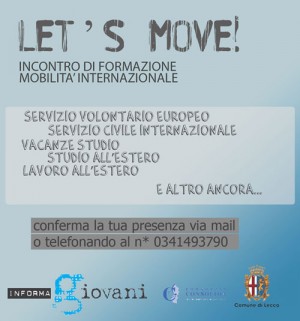 LECCO – In arrivo “Let’s move!”, una serie di incontri informativi dedicati a ragazzi e ragazze di massimo trent’anni e intenzionati a fare un’esperienza di lavoro o di volontariato all’estero.
