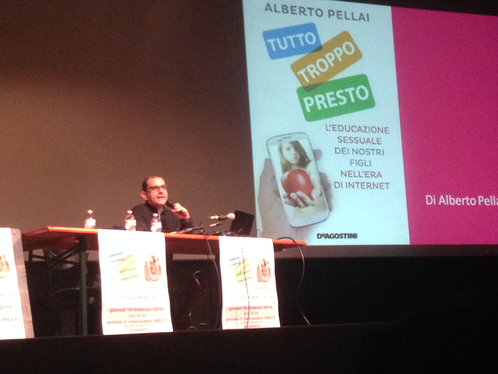Più di 500 persone, per la maggior parte genitori, la sera del 18 febbraio hanno risposto all’invito delle associazioni e il teatro Jolly gremito ha seguito in assoluto silenzio l’intervento dello psicoterapeuta.
