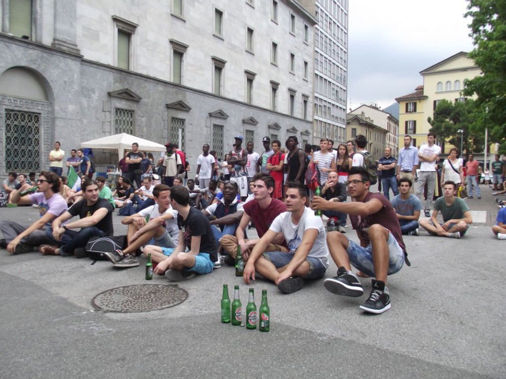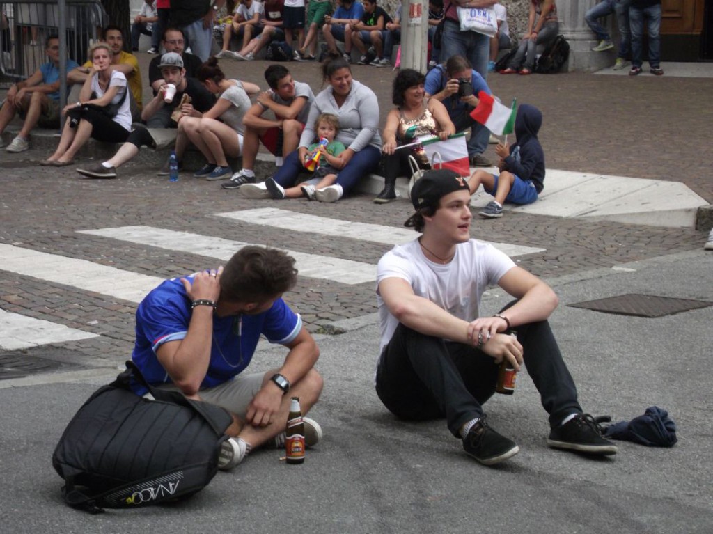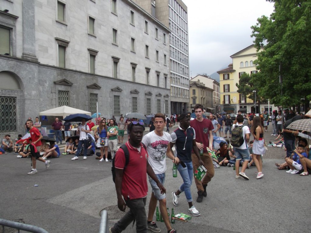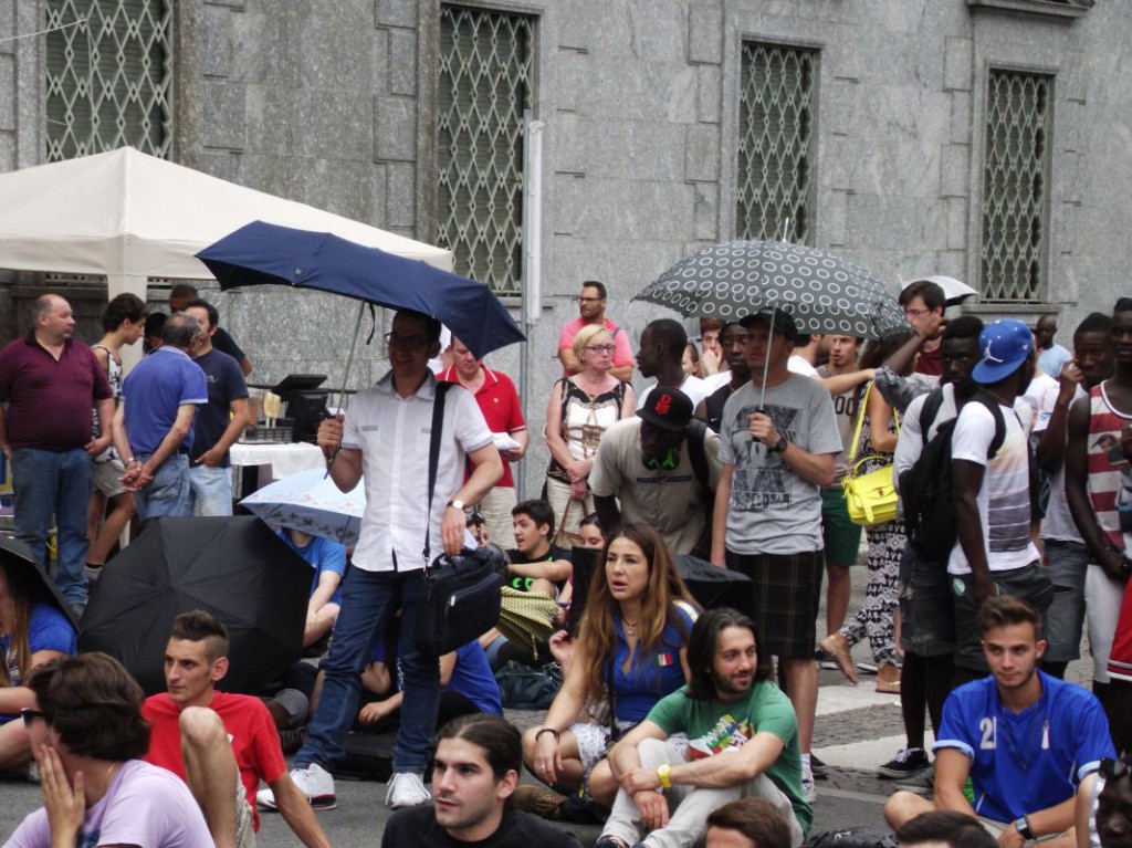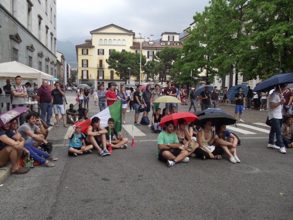 Le nuvole nere che si addensano in cielo già da subito minacciano di rovinare la festa e scoraggiano molti dei lecchesi che avevano scelto il maxischermo per la partita contro il Costa Rica. Per assistere al match con la Celeste, infatti, sono molti meno i tifosi che scelgono piazza Garibaldi.