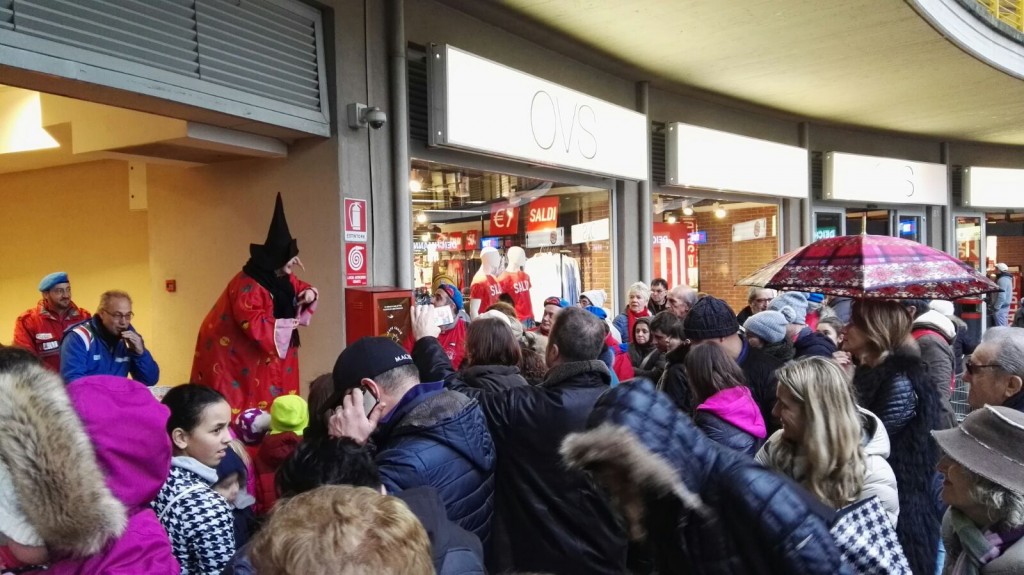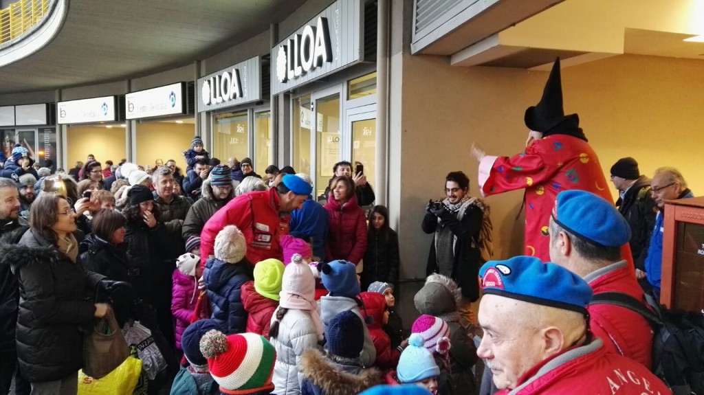 Proprio lì, intorno alle 16, la Befana ha capolino, giungendo nella piazza del centro commerciale a bordo del trenino natalizio, distribuendo dolcetti ai bimbi.