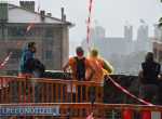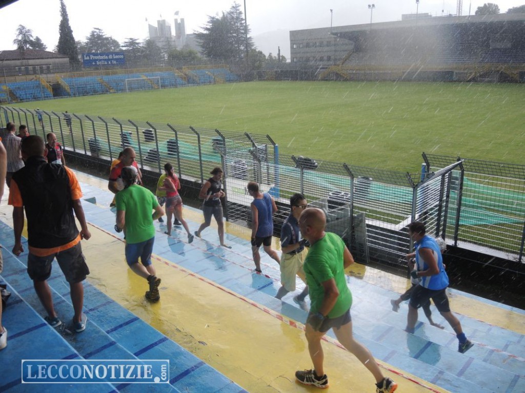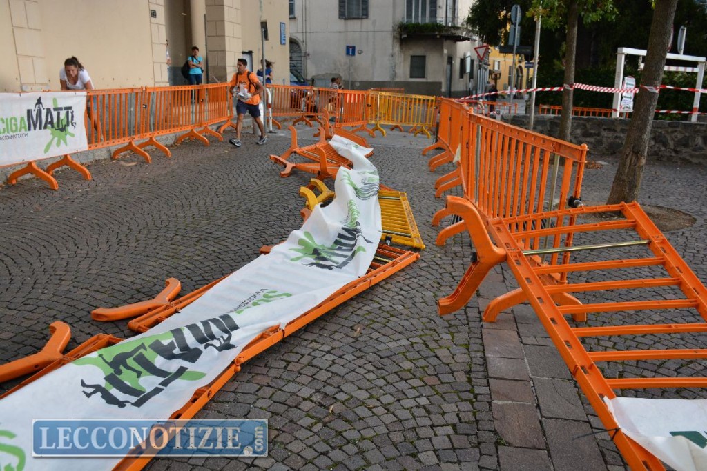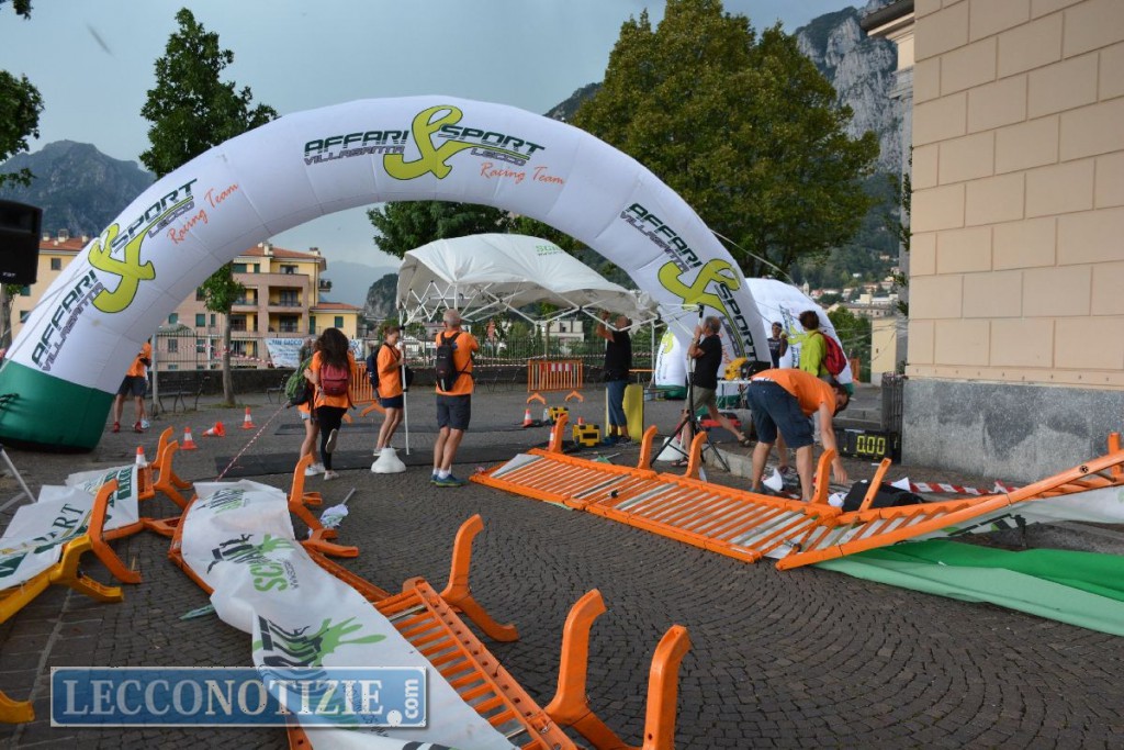 Invece, poco prima della partenza prevista per le 15.30, una bufera di pioggia, grandine e vento ha imperversato sulla città, facendo cadere transenne e costringendo gli organizzatori a togliere i gonfiabili sia alla partenza che al traguardo allestito alla chiesa di Acquate.