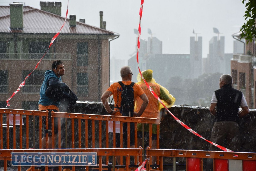 Sul lungolago, in attesa del via alla gara, si erano radunati gli oltre 750 iscritti e la folla pronta ad applaudirli. Poi l’arrivo della pioggia e della grandine e la decisione di anticipare la partenza di dieci minuti rispetto al programma, salvo poi sospendere la manifestazione per l’impossibilità di proseguire, fermando i partecipanti all’oratorio di Acquate.