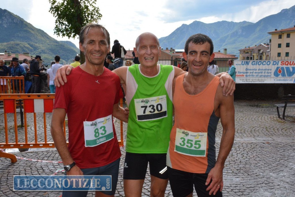 I vincitori morali della Scigamatt: al centro il primo arrivato Riccardo Lerda, a sinistra il secondo Luca Conti e il terzo sul “podio” Claudio Bertoldini. Sono stati i primi a giungere all’arrivo pur a gara sospesa