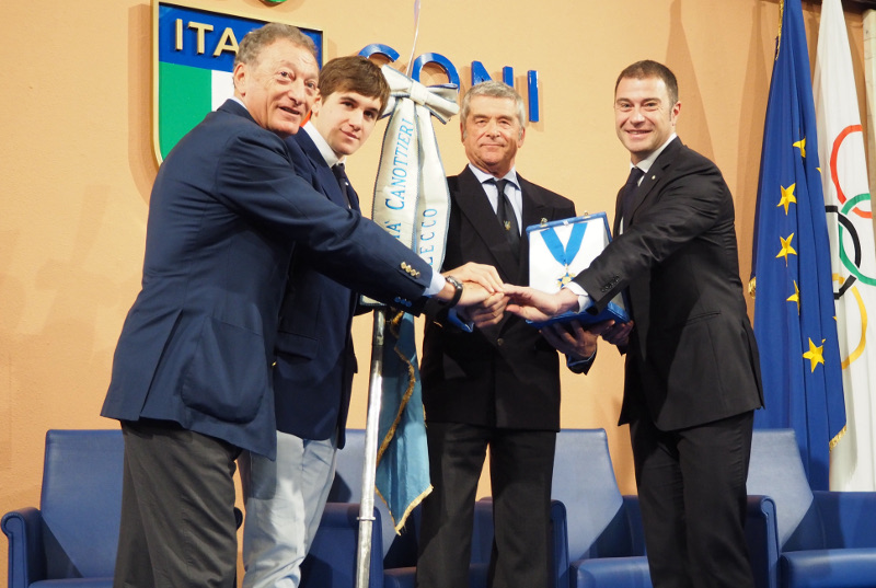 ROMA – Oggi, 15 dicembre, la Canottieri Lecco, ha ricevuto il collare d’oro al merito sportivo, la massima onorificenza con cui il CONI premia le società sportive che, ha ricordato il presidente Malagò, “viene conferita alle società sportive che vantano almeno 100 anni di attività, risultati sportivi a livello internazionale e un irreprensibile governo”.