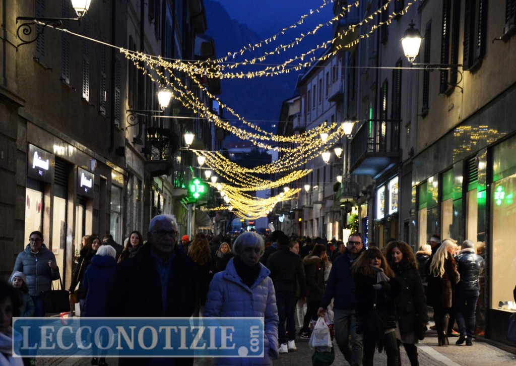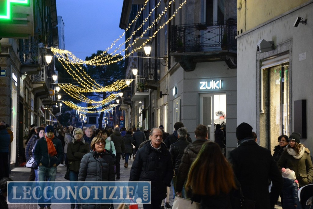 LECCO – A meno di dieci giorni dal Natale, la corsa al regalo entra nel vivo anche per le vie del centro di Lecco abbellite dalle luminarie: un’atmosfera suggestiva accompagna lo shopping natalizio nel capoluogo manzoniano e affollatissime nel penutimo fine settimana di compere e i primi ad essere soddisfatti sono i commercianti.