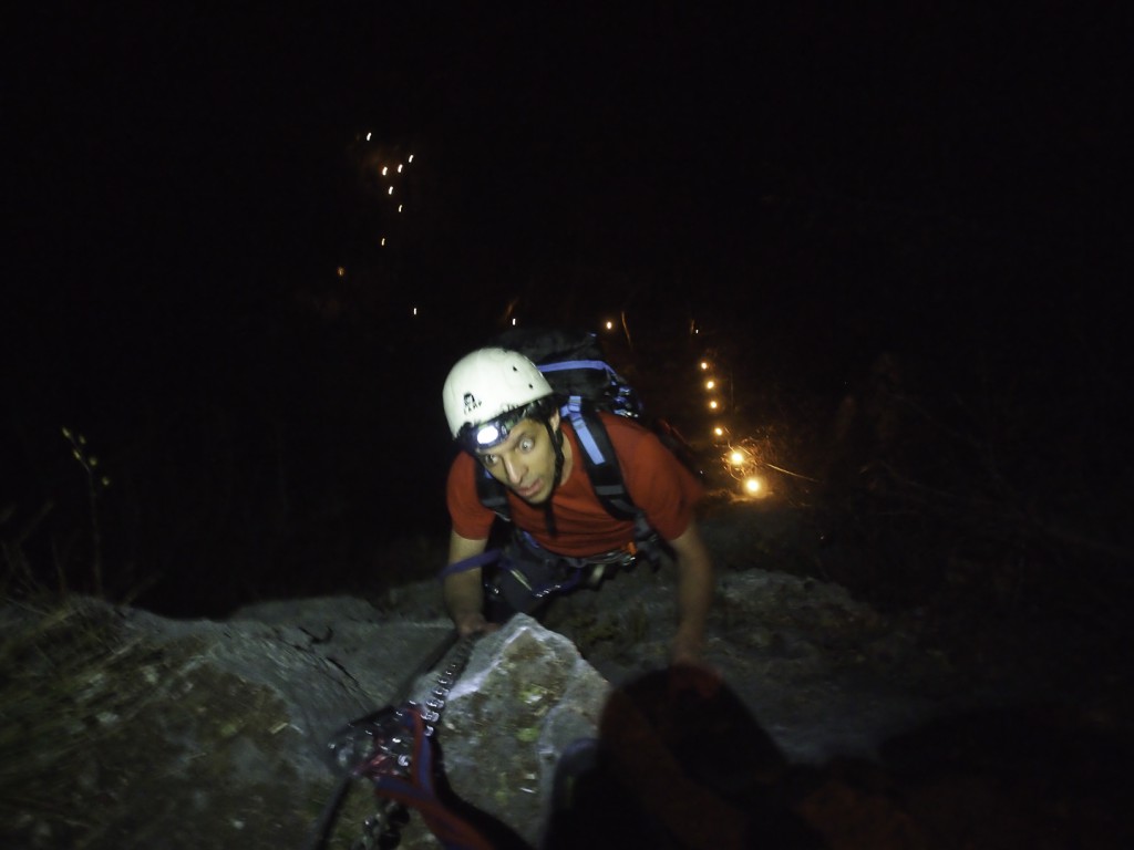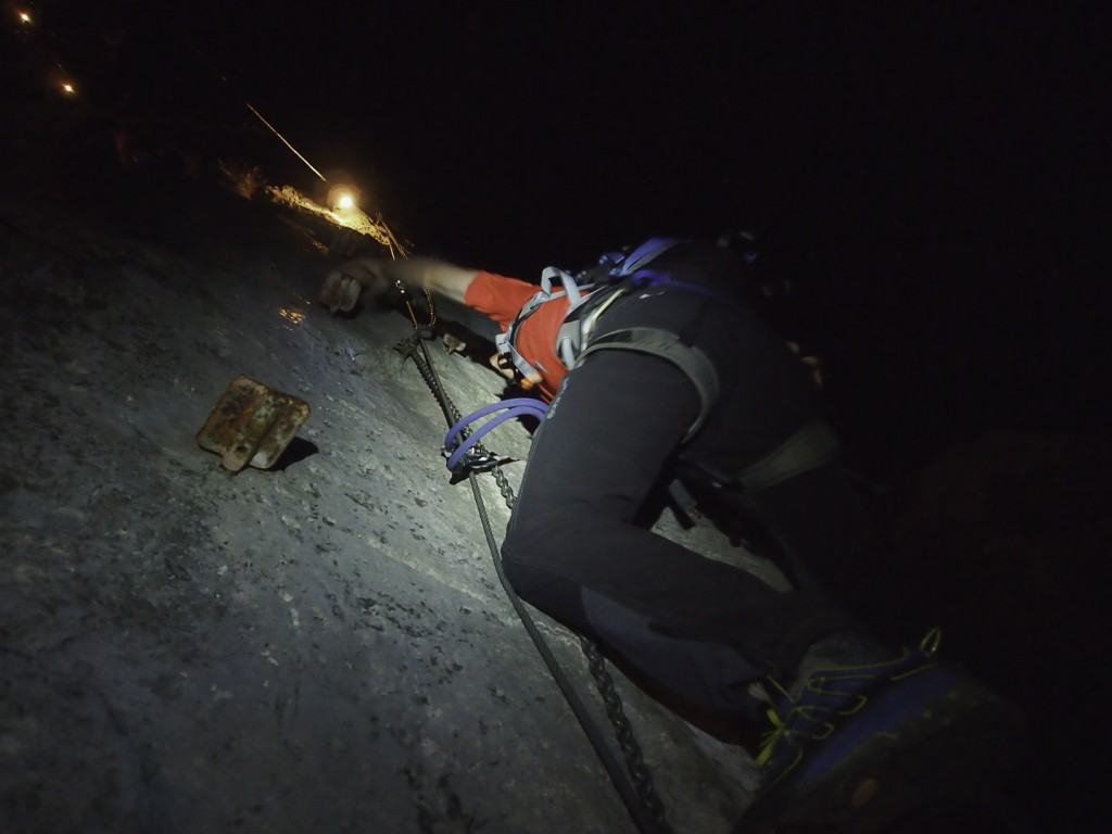 Importante la risposta ricevuta: si stimano in un centinaio le persone salite lungo la Ferrata dalle 18.30 orario di accensione fin oltre le 22.30 con anche tanti giovanissimi in ferrata con la famiglia. Presenti gruppi di amici più o meno organizzati da Valmadrera, Lecco, Colico ed anche una rappresentanza della delegazione CNSAS della Valsassina che non ha voluto mancare alla serata con gli amici e compagni di tanti interventi.