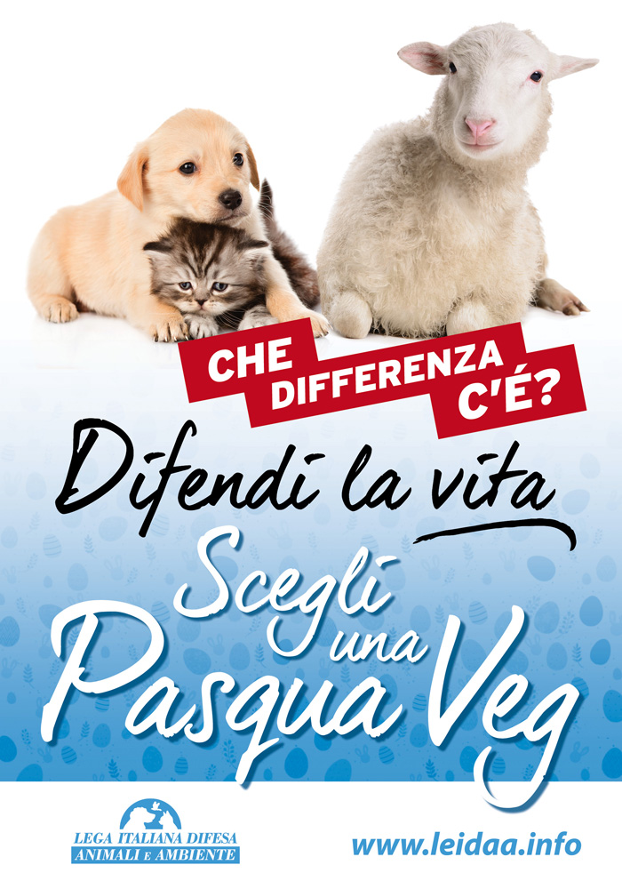 Nei due week end che precederanno la Pasqua, quindi il 12 e 13 e 19 e 20 marzo, nelle principali piazze del Paese, i volontari della Lega Italiana Difesa Animali e Ambiente promuoveranno l’adozione di uno stile di vita veg (vegetariano e vegano), rispettoso della vita degli animali. Proprio in occasione della Pasqua, in nome di una tradizione falsamente legata alla pratica religiosa, sulle tavole si propongono carni di agnello e di capretto.