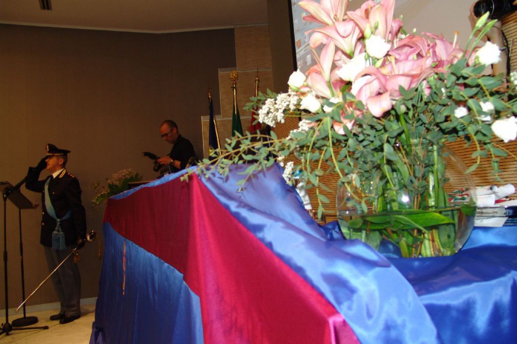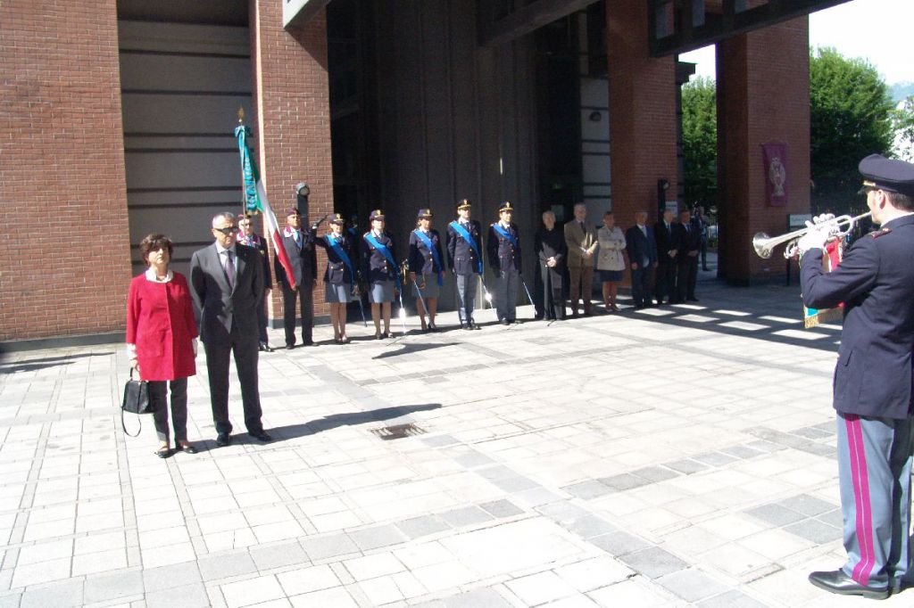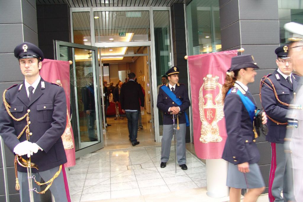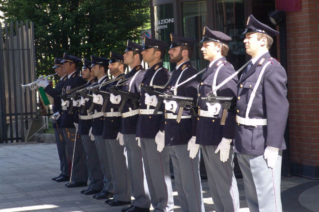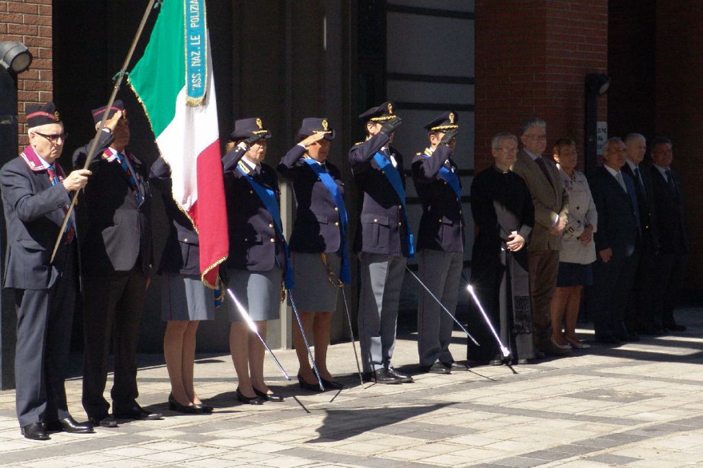 Intorno alle 10, nella corte interna della Questura, si è sono tenuta la prima parte della mattinata di celebrazioni con gli onori ai caduti, alla presenza del questore Francini e del prefetto Antonia Bellomo, con la deposizione della corona di fiori in ricordo di tutti gli agenti scomparsi durante il loro servizio.