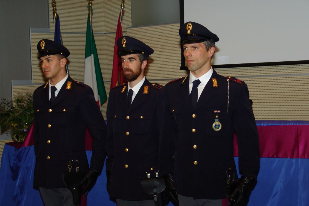 Assistente capo Mario Venturini della Polizia Stradale sezione di Lecco, agente scelto Ivan Schiavetti e l’agente Francesco Pischedda, entrambi della Polizia Stradale sezione di Bellano, premiati con la Lode per l’impegno profuso nell’espletare un’operazione di Polizia Giudiziaria, che si concludeva con l’arresto di un individuo, resosi responsabile del reato di furto aggravato ai danni di un esercizio commerciale (Lecco, 13 febbraio 2011)