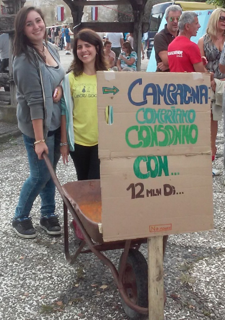 Una cariola curiosa si è aggirata tra la le bancarelle della Sagra di San Maurizio di domenica 21 settembre. A guidarla sono stati i giovani della cooperativa, gli stessi ragazzi che per diversi anni hanno prestato tempo e sudore prendendosi cura dei boschi adiacenti Consonno, ripulendoli da rovi e rifiuti, ripristinando un antico sentiero, riportando alla luce un antico roccolo, organizzando gite per bambini, momenti teatrali e musicali.