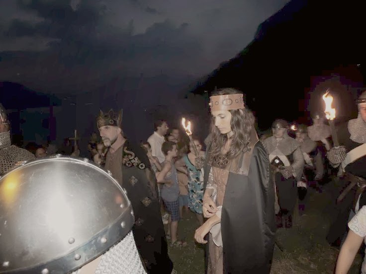 Nobili e popolani, arti e mestieri, musici e saltimbanchi, un presidio militare con ronde ed esercitazioni, per arrivare a sera quando dal lago arriverà il corteo di barche che consegnerà la regina per scontare la sua prigionia, che però durerà poco.