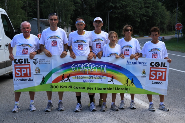 Obiettivo centrato! La staffetta partita da Lecco lo scorso 29 luglio ha raggiunto oggi, martedì 16 agosto, Chernobyl. Come da cronoprogramma, dopo ben 2020 chilometri macinati passo passo uno dopo l’altro: Giosuè e Ruben Bolis, Miriam Butti, Giovanni Civillini, Giacomo Ghezzi, Daniela Gilardi, Alberto Rovera e Osvaldo Stropeni hanno raggiunto la città ucraina. Con loro hanno fatto ingresso a Chernobyl anche il prezioso staff che ha seguito tutto il lungo viaggio dei podisti.