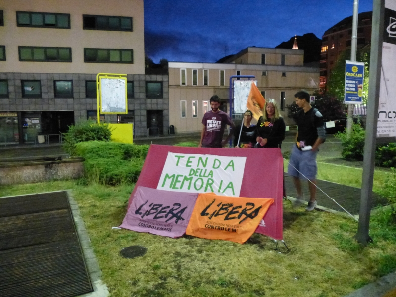 LECCO – E’ stata allestita nella serata di domenica 25 agosto in piazza della stazione la “Tenda della memoria”: l’iniziativa si inserisce nell’ambito della rassegna “E!State Liberi!”, promossa dall’associazione “Libera” e finalizzata al coinvolgimento dei cittadini lecchesi sul tema della lotta alle mafie.