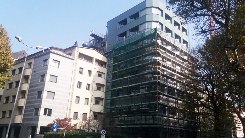 LECCO – Dopo tanti anni di attesa, eccola spuntare tra le impalcature che, rimosse dalla sua estremità, ne mostrano la nuova estetica: la Torre del Tribunale sta cambiando volto mentre ci si avvicina alla fatidica fine dei lavori.