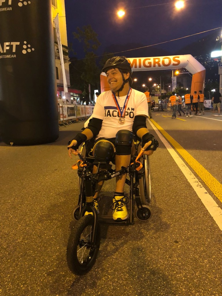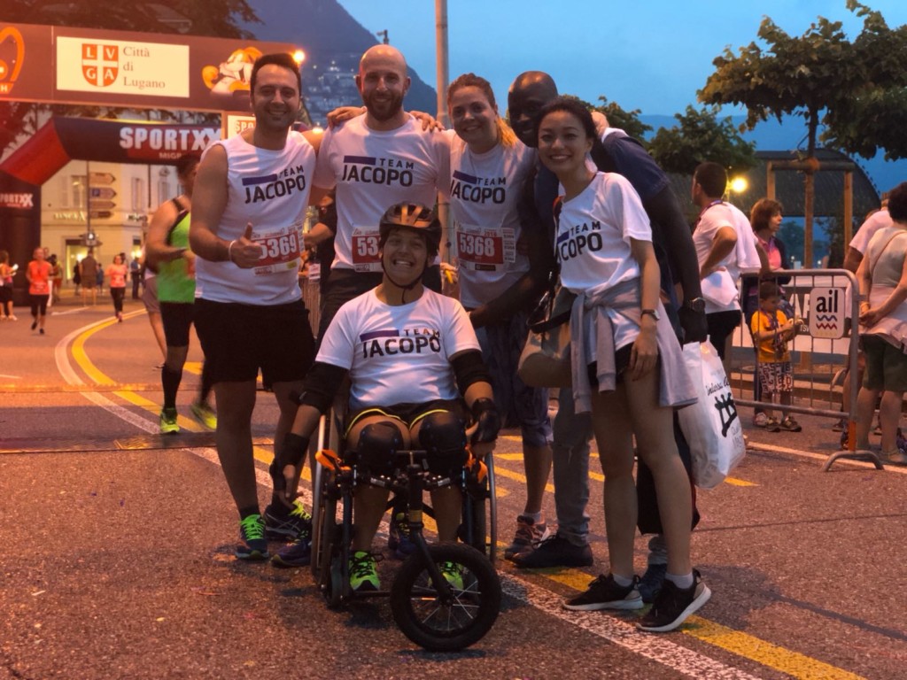 Da cosa nasce cosa quindi dopo la Stralugano del 2017, è arrivata la gara di Chia nello scorso aprile e adesso la seconda volta in Svizzera, con un’organizzazione sempre più performante: “La sedia a rotelle con tre ruote e la possibilità di pedalare parzialmente costituiscono un aspetto della mia partecipazione. L’altro è la creazione di un team di amici “Jacopo, Above & Beyond Team” che corrono con me dividendo tra loro i chilometri della gara”, spiega Jacopo, che è diventato così un po’ atleta, un po’ inventore e un po’ team manager.