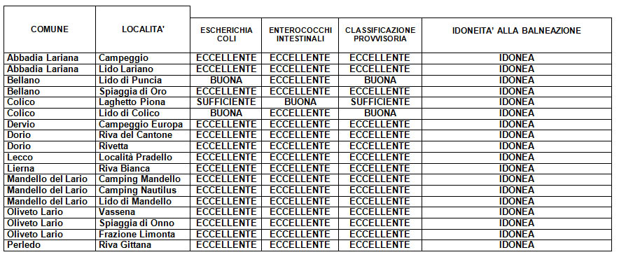 LECCO – Pubblicati venerdì i nuovi dati elaborati dall’ASL sulla balneabilità del lago nelle principali località della provincia.
